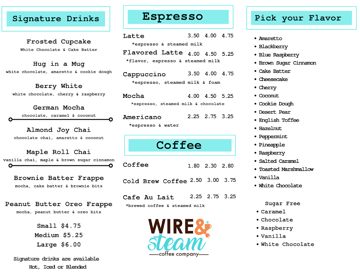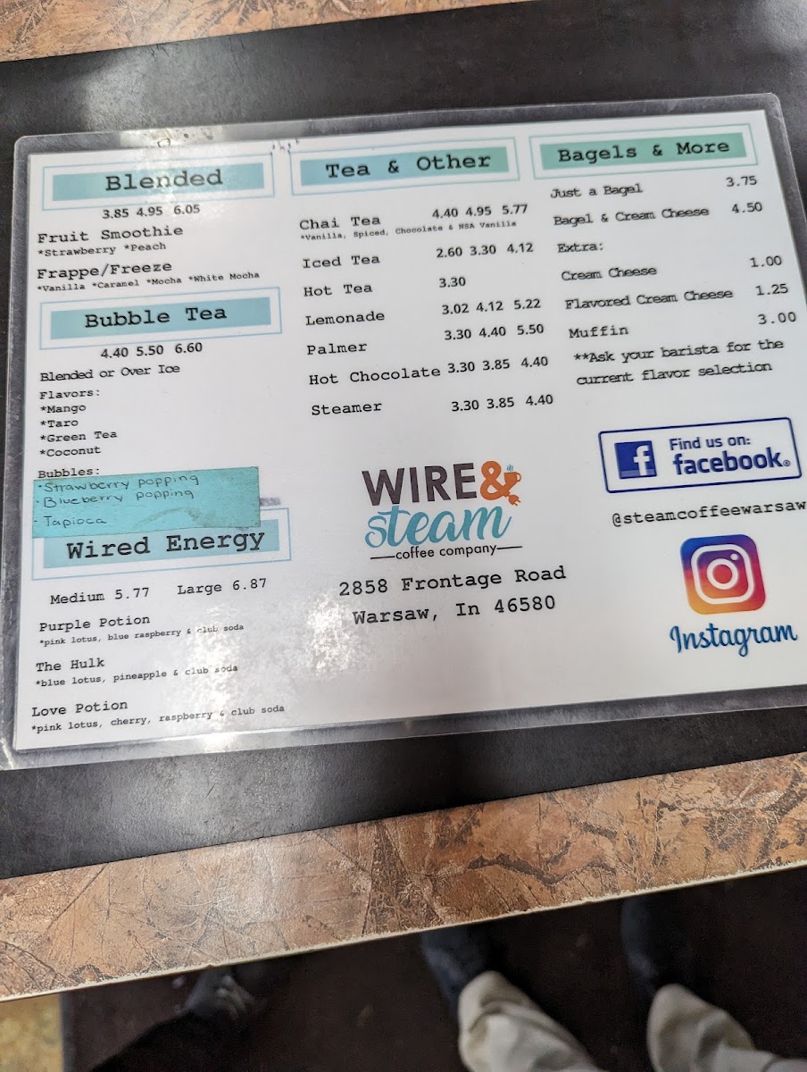Welcome to Wire & Steam Coffee Company, located at 2858 Frontage Rd, Warsaw, IN. This charming café offers more than just your average coffee experience. Their all-day menu presents a delightful array of beverages, including expertly crafted espresso options such as Lattes, Mochas, and Americanos, alongside refreshing iced Bubble Tea and comforting Hot Chocolate.